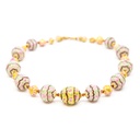Collana con perle in vetro alabastro avorio con particolare decoro con vetta ritorta e piccoli boccioli rosa smalto; piccole perle con foglia oro 24 kt decorate a piccoli fiori - materiale fine XX sec.